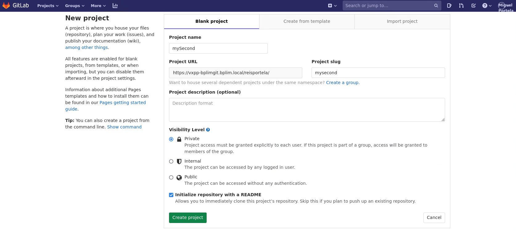 Whenever a user wants to use Git on the external server, it is necessary to add their project to the internal GIT server. This procedure is carried out by DSI.
